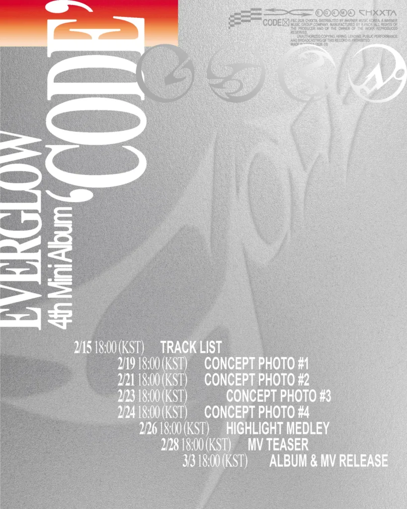 O grupo retornará com seu quarto mini-álbum, intitulado “CODE”, no dia 3 de março. Você pode conferir o cronograma do próximo lançamento logo abaixo!