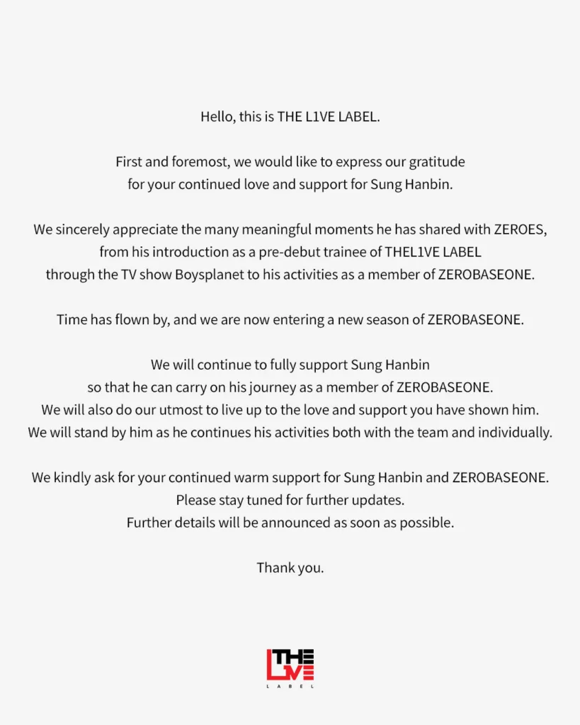Em 12 de fevereiro, a WAKEONE, agência do ZEROBASEONE, anunciou que Sung Han Bin, Kim Ji Woong, Seok Matthew, Kim Tae Rae e Park Gun Wook continuarão juntos no grupo, que passará a contar com cinco membros.
